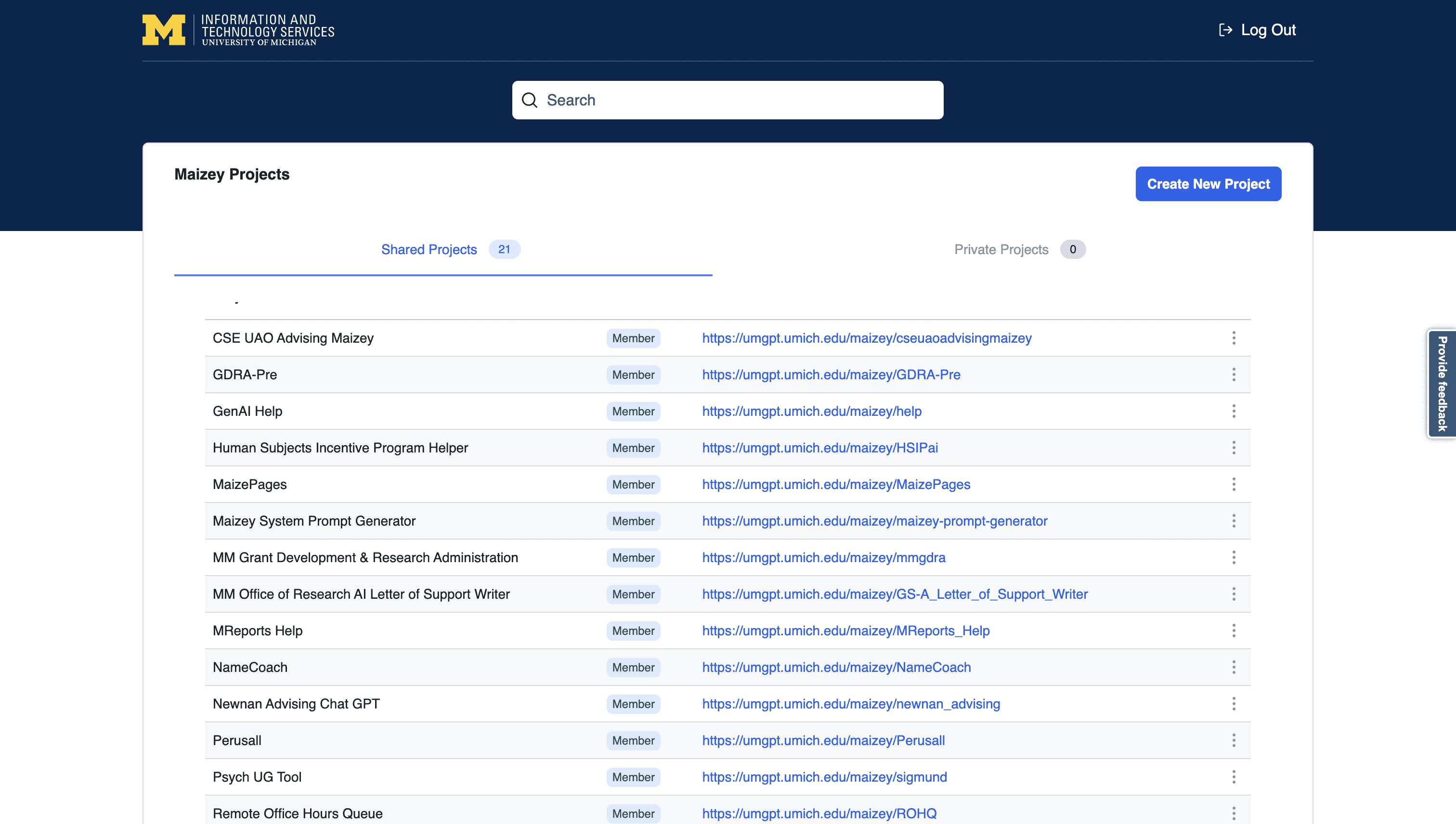 The original U-M Maizey platform presented several usability challenges, including an overwhelming layout, lack of clear visual hierarchy, and insufficient guidance for users to manage projects efficiently. As part of a class project, I conducted a redesign informed by UX principles and techniques learned in class, addressing these key issues to create a more streamlined and user-friendly interface. The redesign demonstrates the application of research-backed solutions to improve navigation, personalization, and overall user experience.