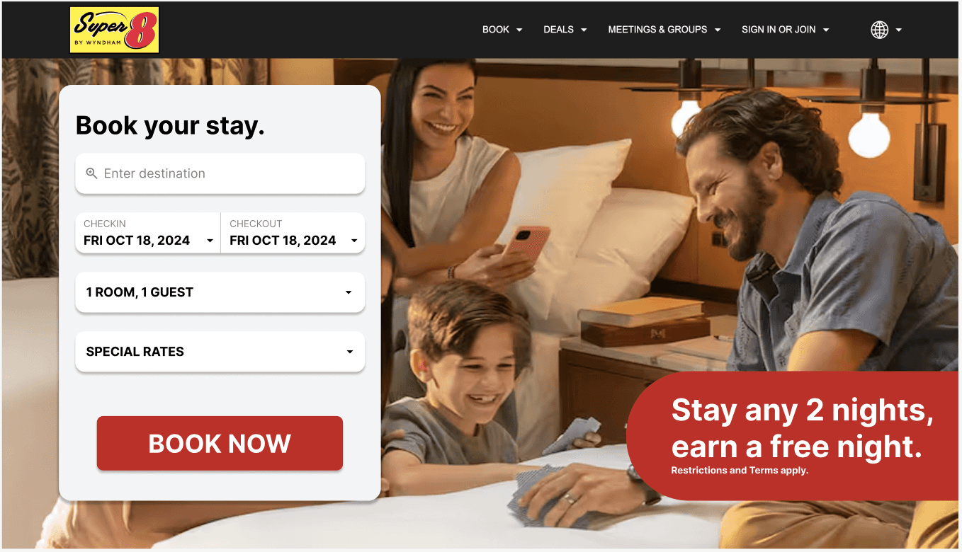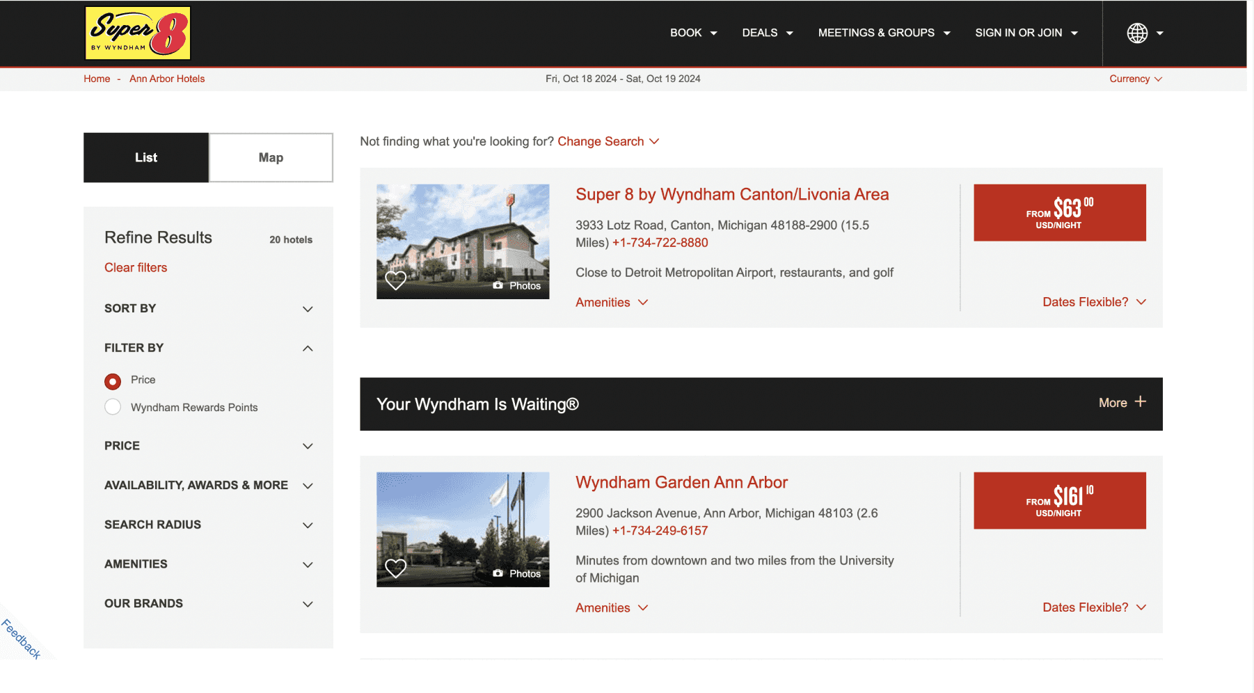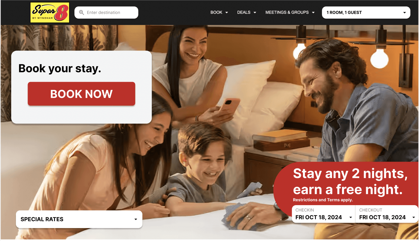 Improved the clarity of affordances on the Super8 website to help users quickly identify where and how to book a room.