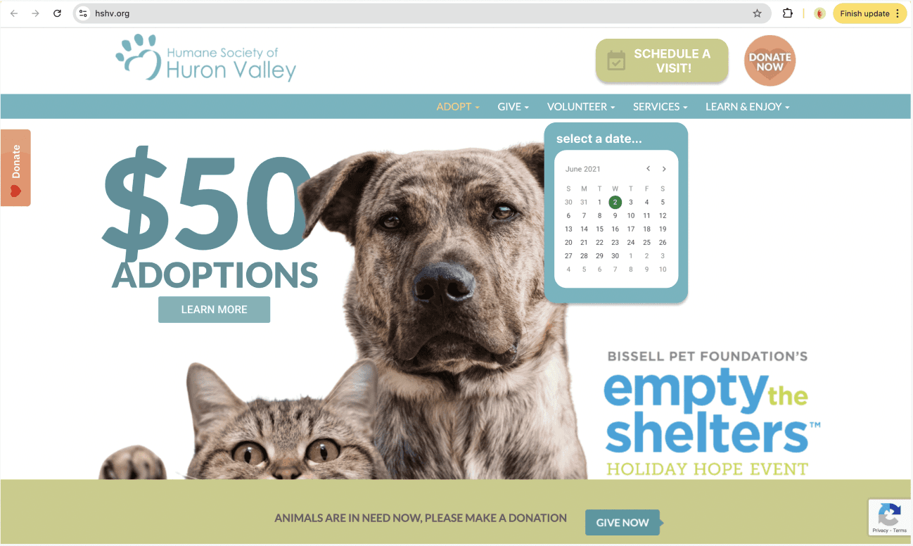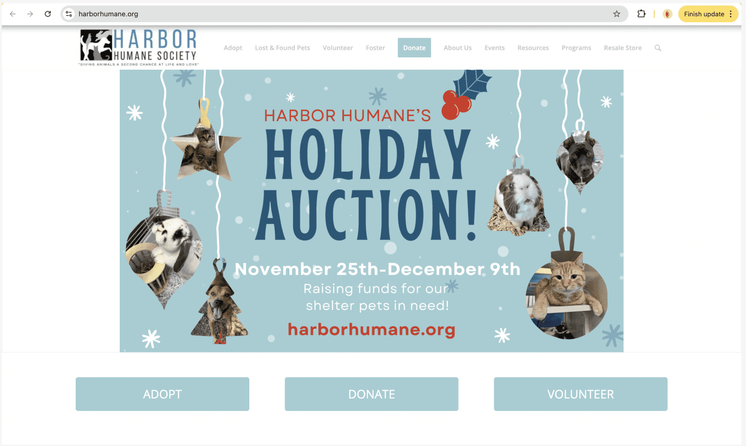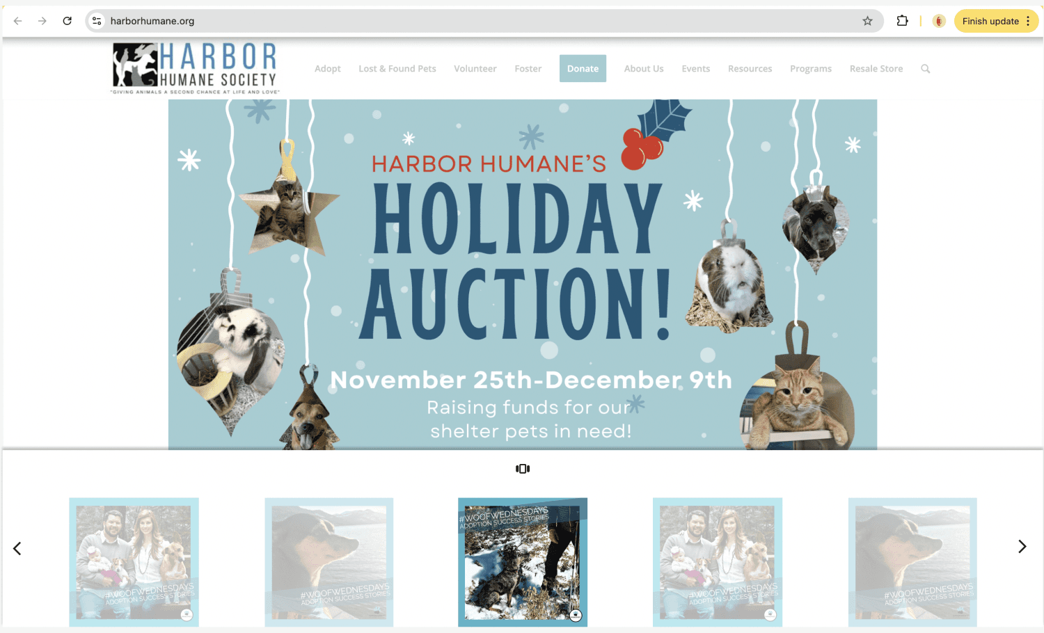 Deepened the emotional connection with users by introducing a testimonial carousel featuring adoption success stories on the Harbor Humane Society website.