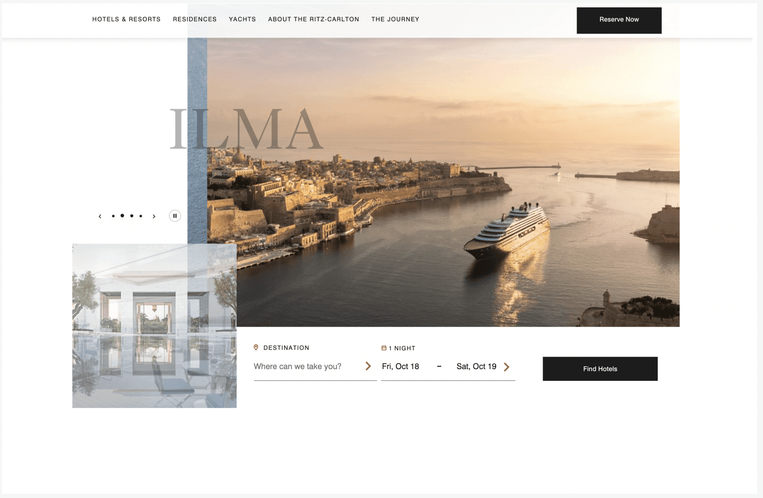 Increased the salience of the "Find Hotels" button on the Ritz Carlton website to make it more prominent and easier for users to quickly locate, thereby improving the booking experience by reducing the time needed to initiate a reservation.