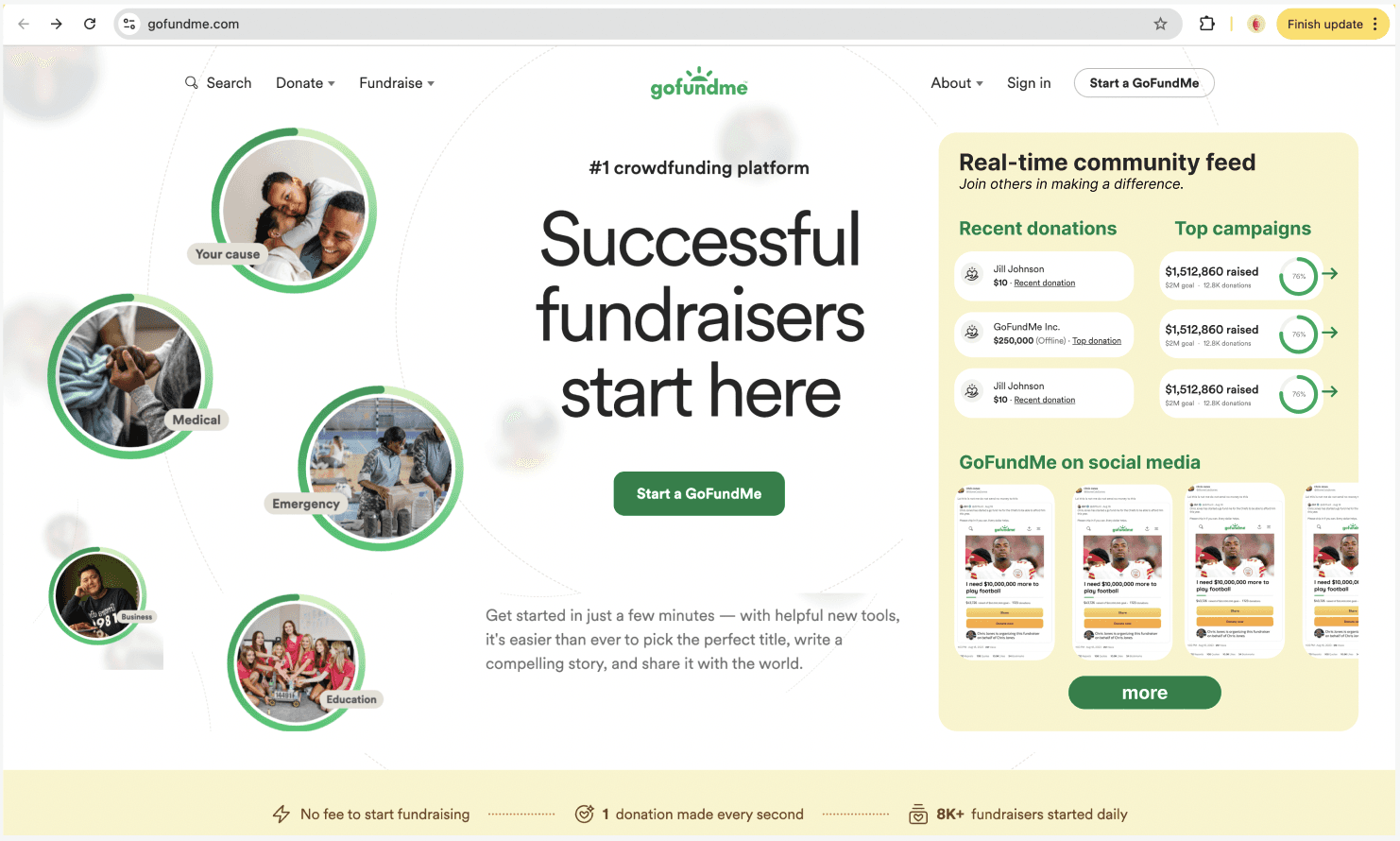 Increased user engagement and enhance the sense of community by introducing a real-time "Community Activity Feed" on the GoFundMe homepage.