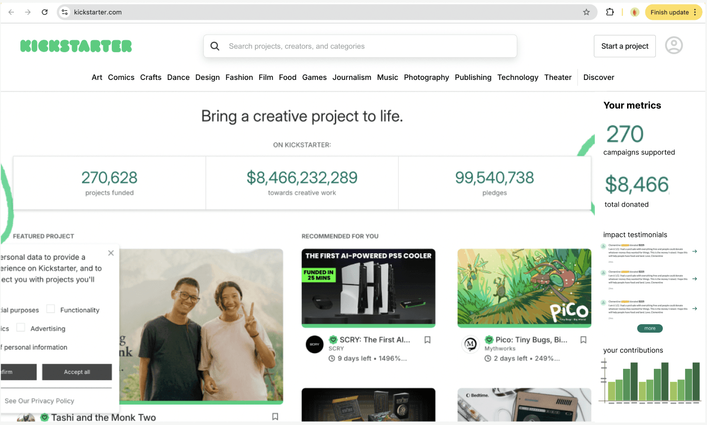 Enhanced user engagement and reflective processes by introducing a personalized section on Kickstarter.