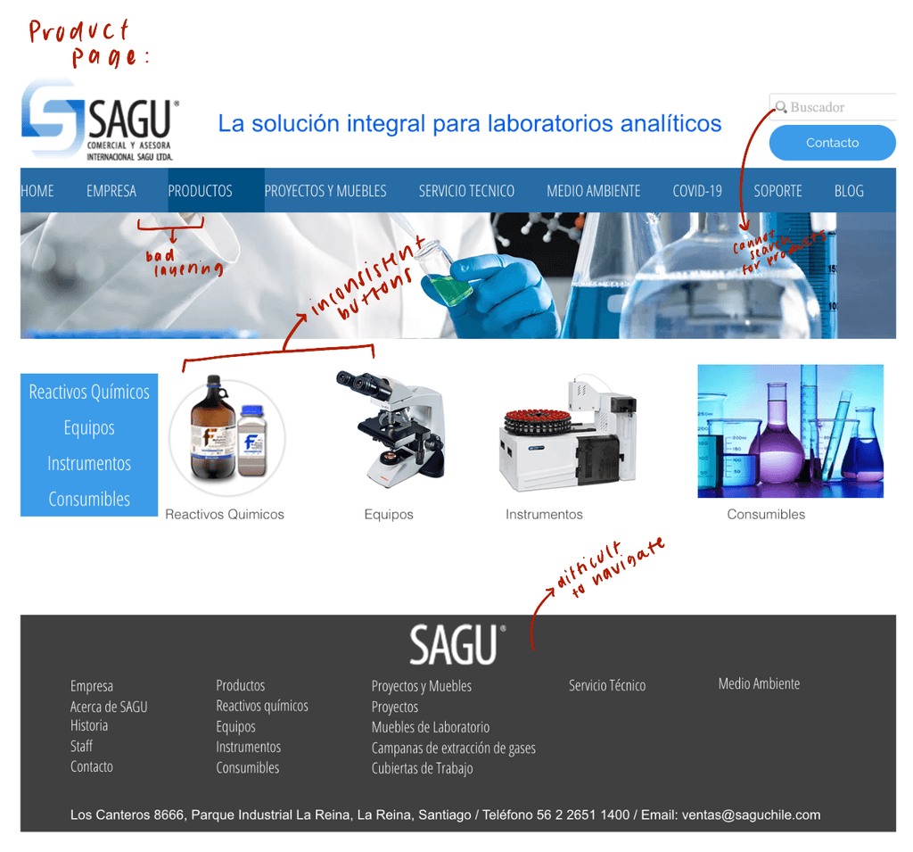 As a UX intern at Sagu, a company based in Santiago, Chile, I contributed to the digital transformation of their online presence. Sagu specializes in providing laboratory equipment, analytical instruments, consumables, and chemical reagents for quality control labs, as well as in the design, construction, and outfitting of lab projects. I conducted my work entirely in Spanish, which added a layer of cultural and linguistic learning to the experience.